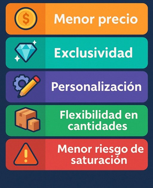 Las fábricas invisibles, al operar fuera de las grandes plataformas como Alibaba, ofrecen ventajas únicas que pueden marcar una diferencia significativa en la rentabilidad y sostenibilidad de tu negocio.